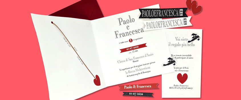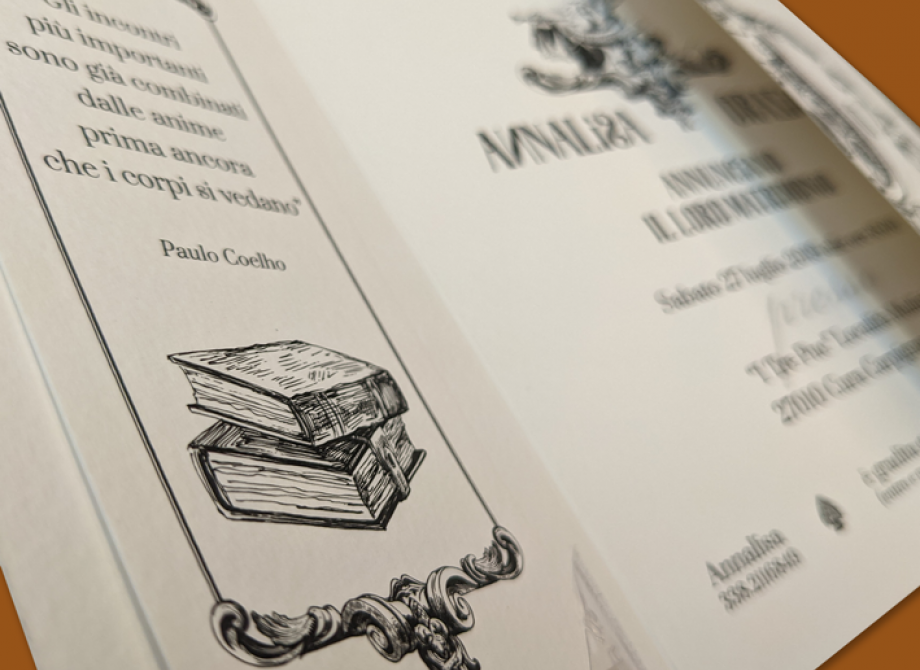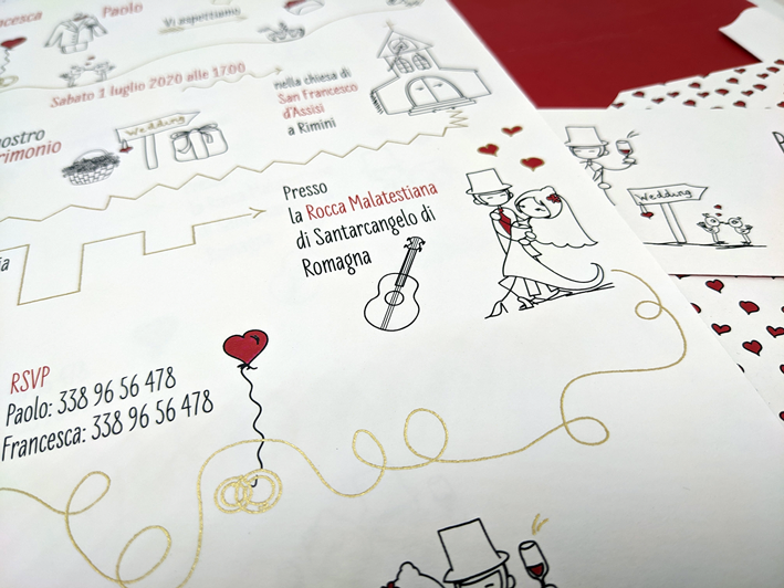 Questa è la parola chiave ormai. Da noi non troverete cataloghi fissi di partecipazioni tra cui scegliere. Abbiamo un piccolo catalogo, certamente, ma è da considerarsi più uno spunto. Una base da cui partire, un'esempio concreto di quello che possiamo realizzare. Il resto del lavoro sarà cucito in base alle vostre esigenze. Dalla scelta delle carte, degli altri materiali, delle grafiche e delle lavorazioni di finitura. Tutto potrà essere concordato al momento per ottenere il prodotto che più si adatti alle vostre esigenze di gusto, di stile e di costo.